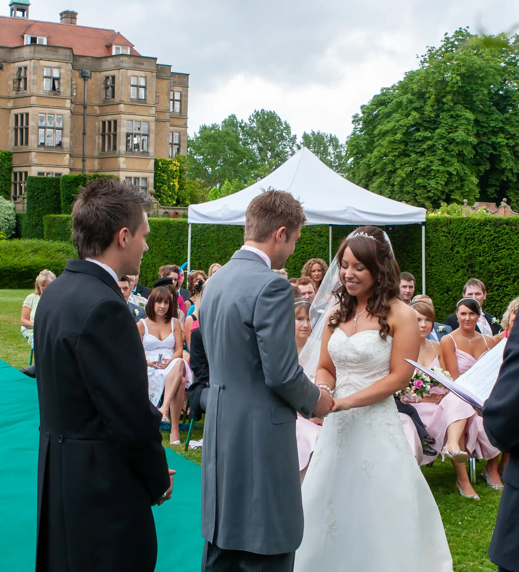 After the vows, the couple explored the estate’s expansive grounds for portraits, including the serene Japanese garden and ornamental pathways. The reception in the Great Hall was filled with laughter, heartfelt speeches, and a surprise performance by a magician that kept guests entertained well into the evening. This gallery showcases the joy, beauty, and atmosphere of a truly unforgettable day at Fanhams Hall.
