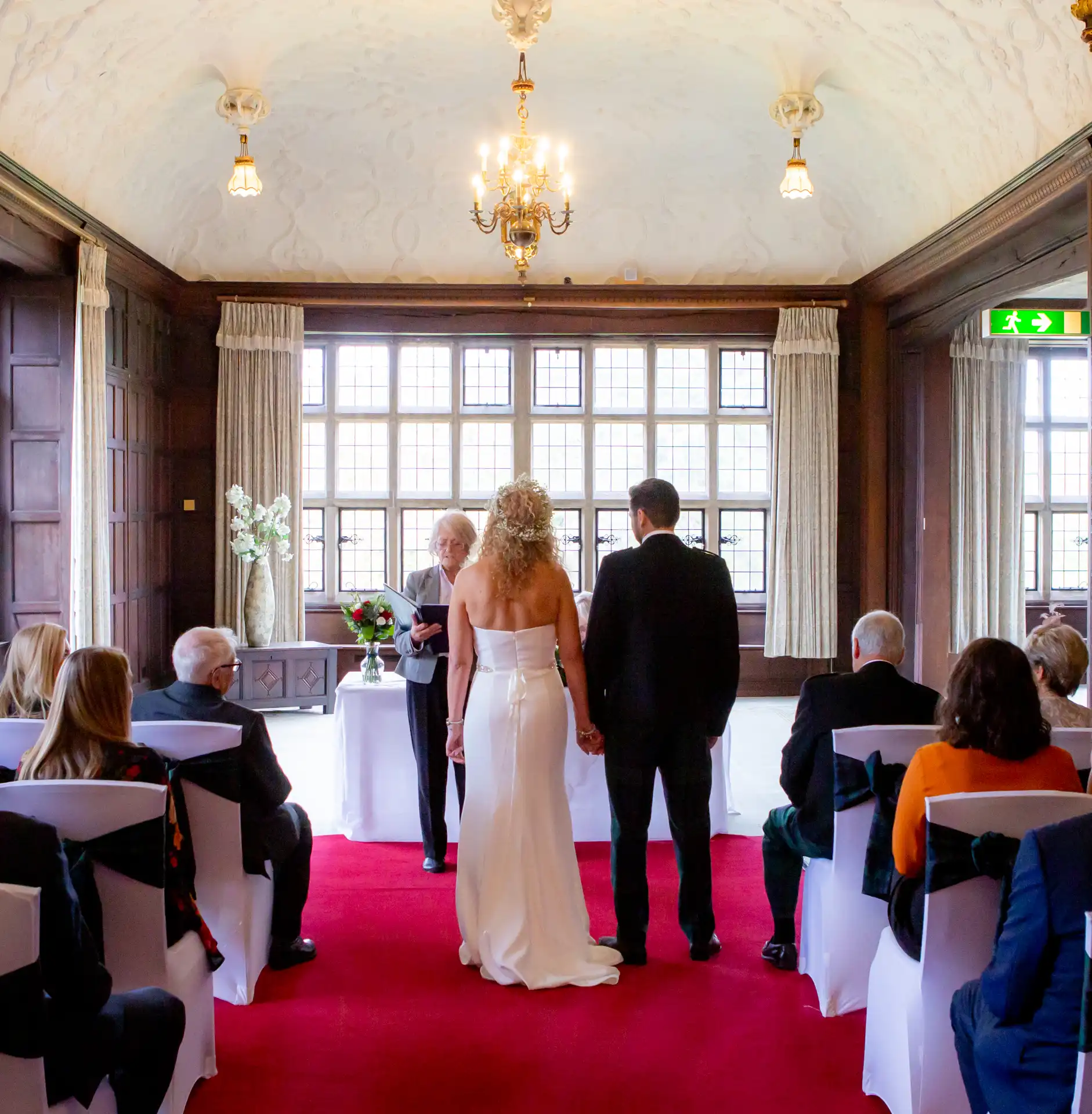 Marc and Janine chose Fanhams Hall for both their ceremony and reception, creating a seamless flow to their wedding day. Their ceremony was held in the magnificent Long Gallery, a light and spacious room filled with period charm. The high ceilings, large windows, and striking details make it an ideal setting to exchange vows, while also ensuring plenty of natural light for stunning wedding photographs.