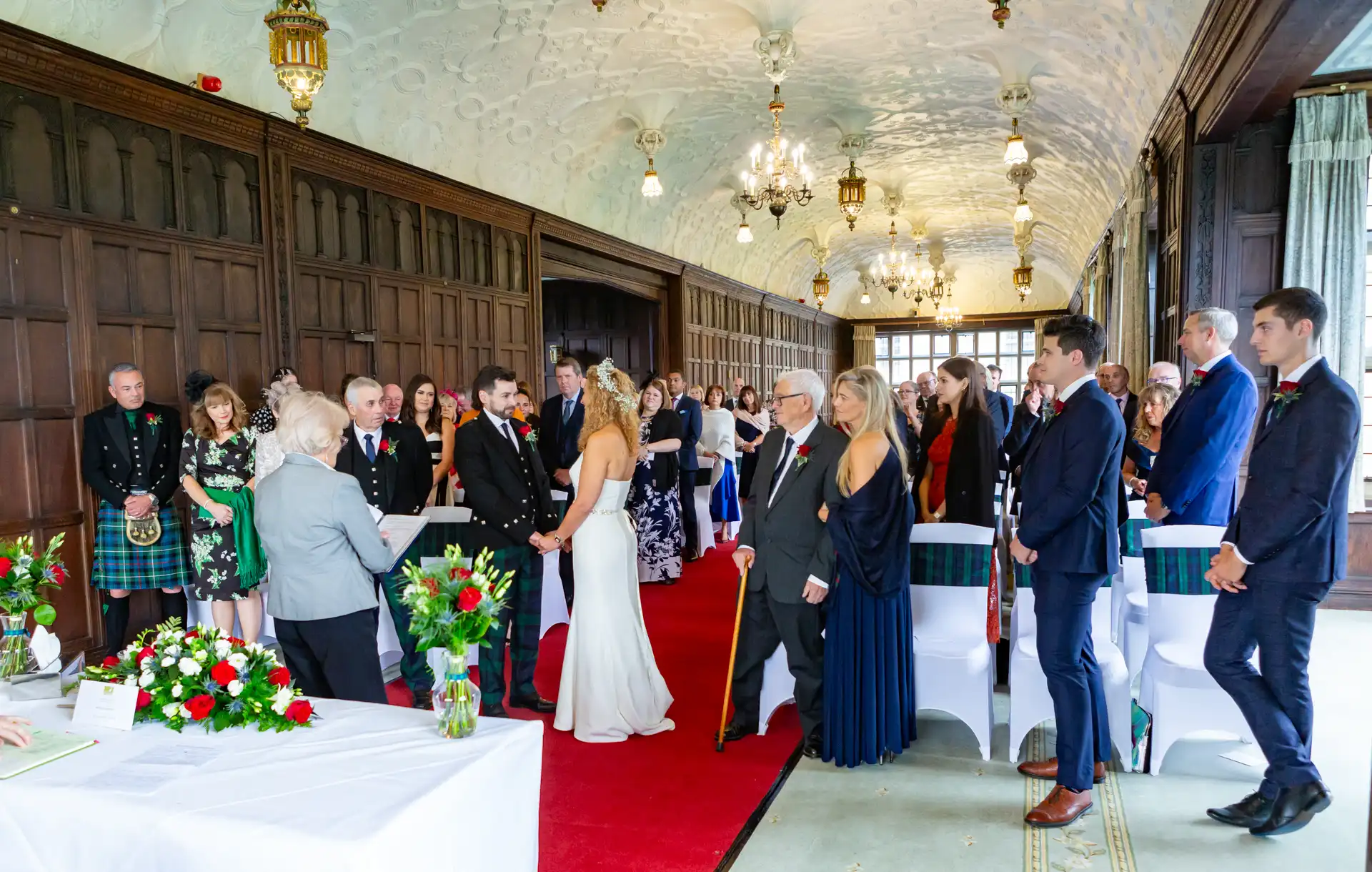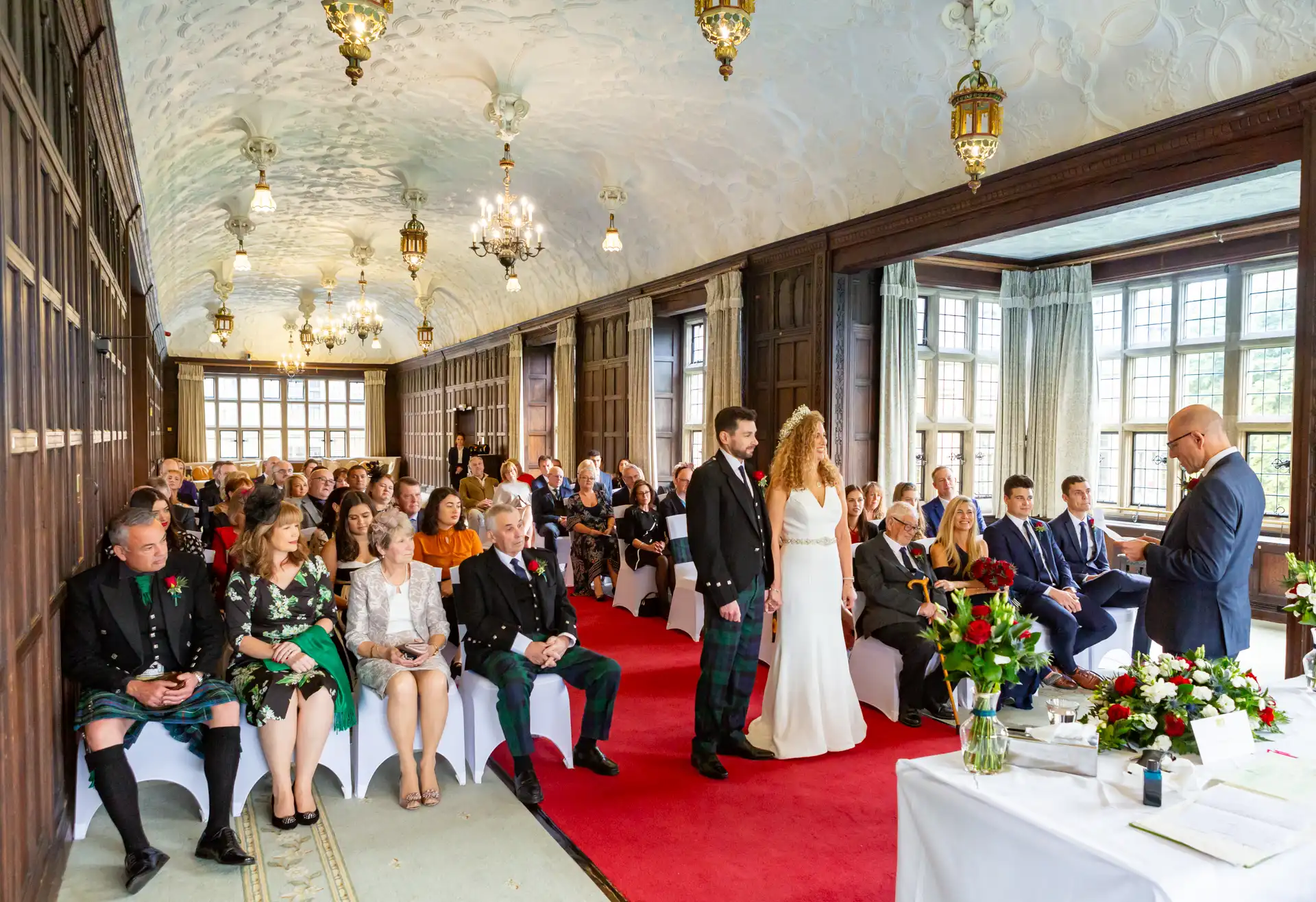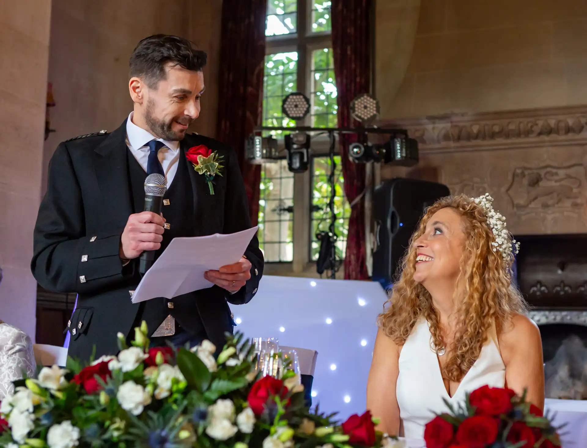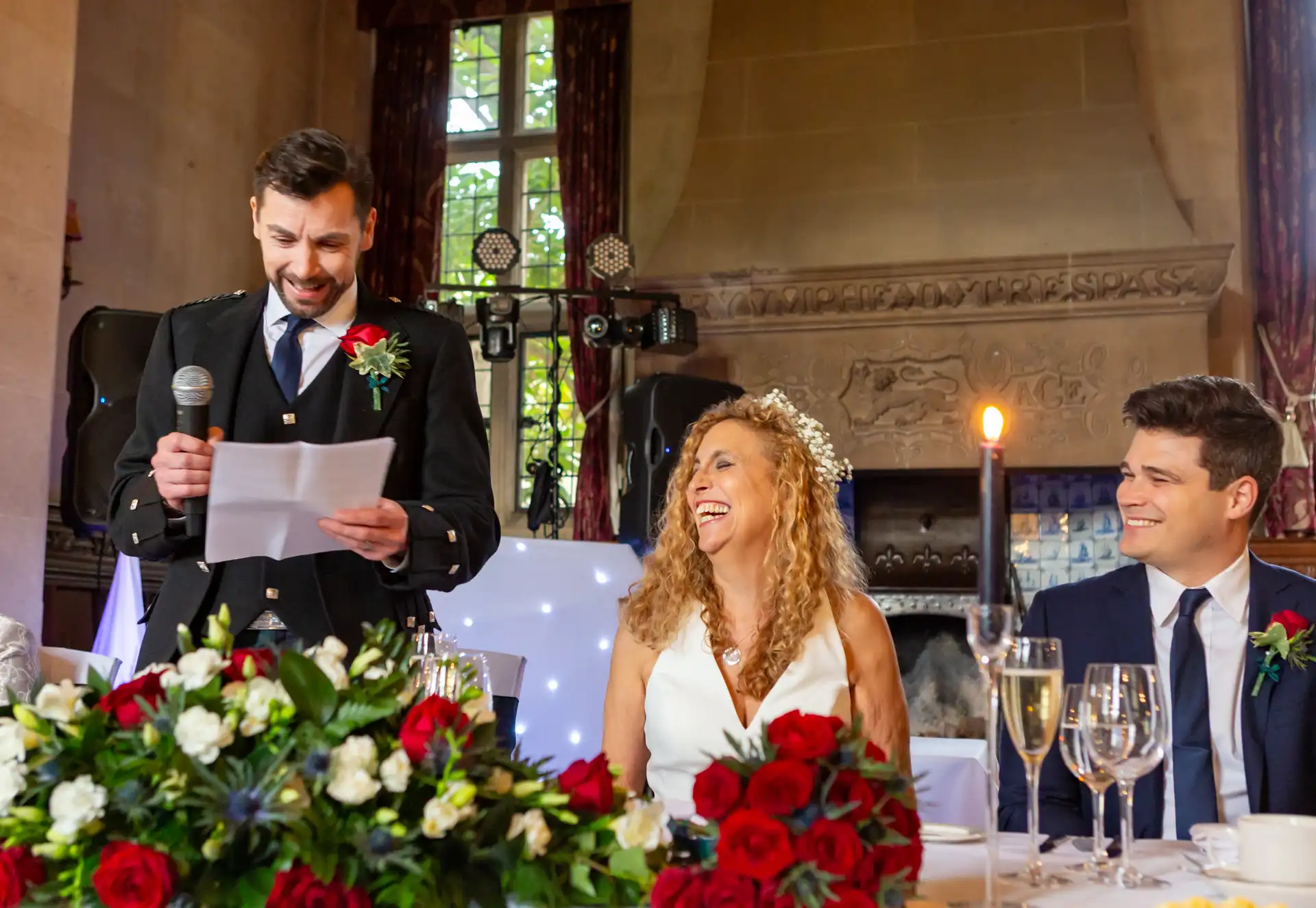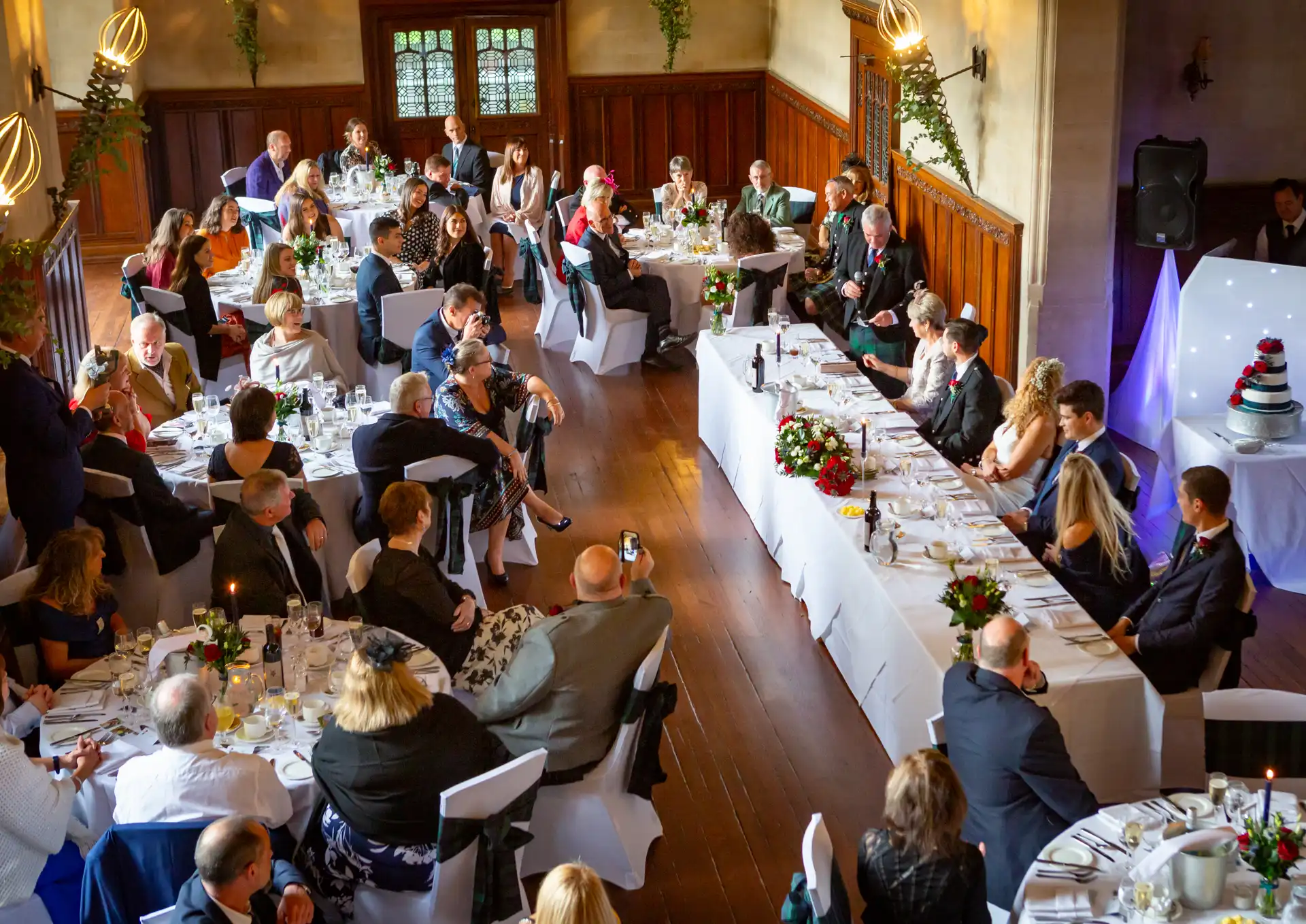 The celebrations then continued in the Great Hall, where Marc and Janine hosted their wedding breakfast. This grand room, with its warm, historic atmosphere, was the perfect backdrop for heartfelt speeches and plenty of laughter. It’s a space that brings friends and family together in a setting that feels both impressive and welcoming, adding another layer of beauty to the wedding story.