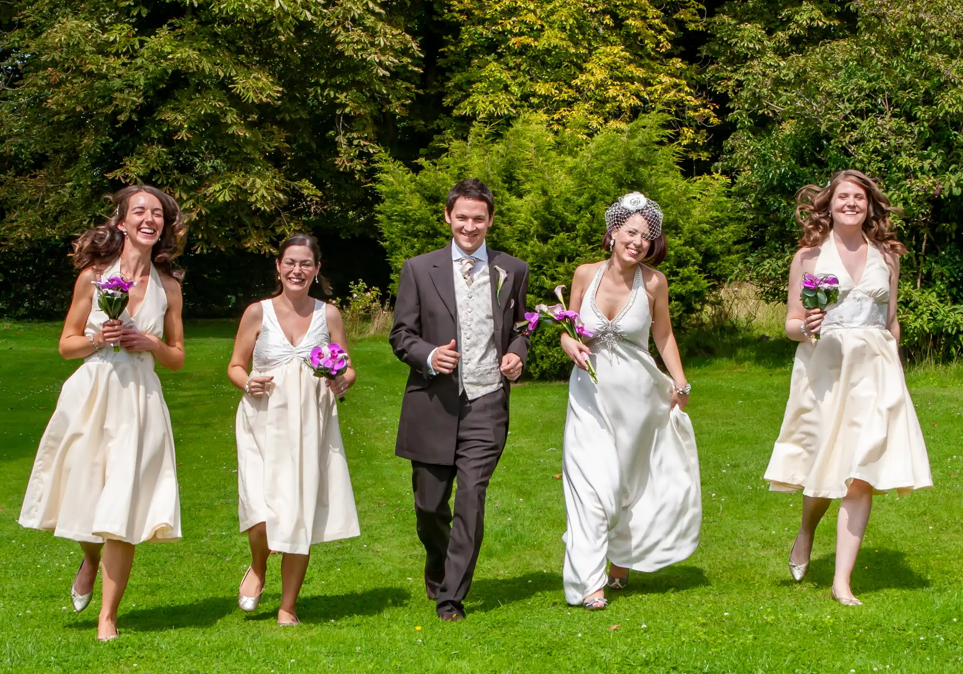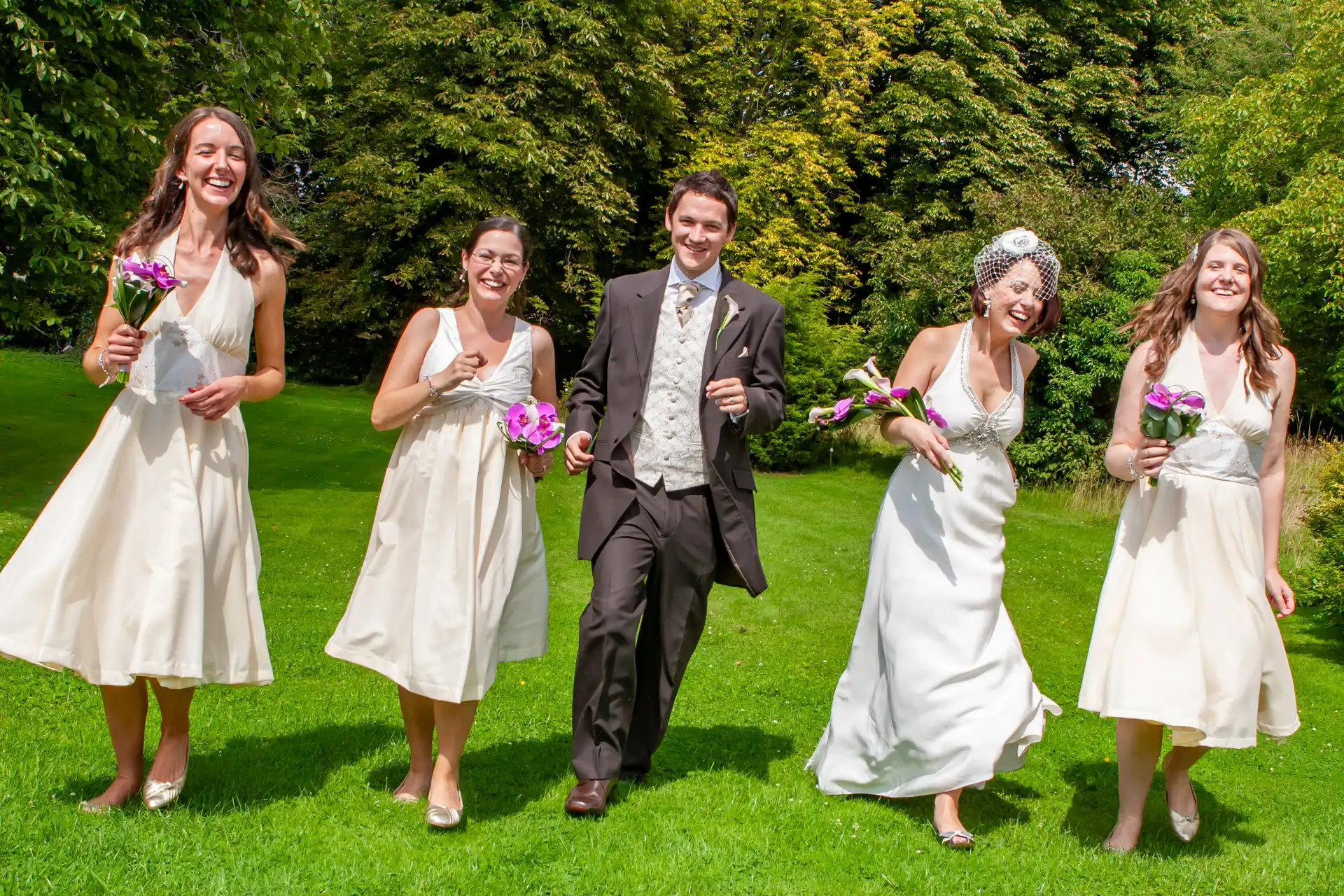 The couple’s energy and playfulness came through in every frame, from elegant portraits at the hotel entrance to spontaneous shots of the bride, groom, and bridesmaids running through the gardens. With its mix of historic charm and open-air beauty, Letchworth Hall provided the perfect canvas for dynamic and memorable wedding photography.