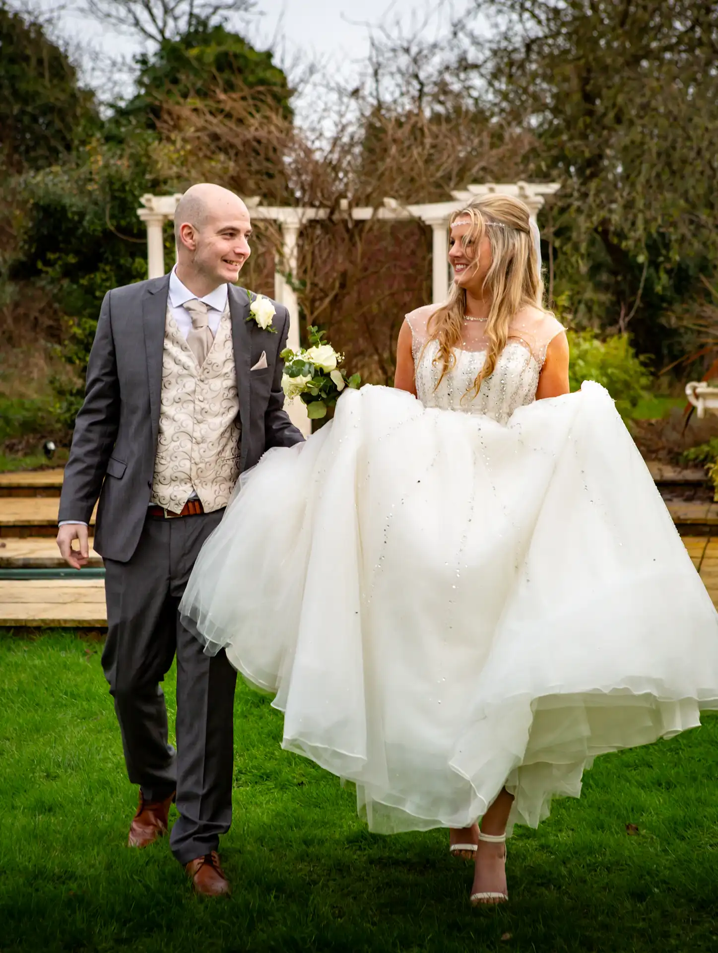 The couple’s playful spirit came through in every frame, from relaxed portraits in the landscaped gardens to dramatic evening shots under the stars. Indoor and outdoor locations across the estate provided a rich variety of backdrops, making this gallery a vibrant reflection of their personality and the timeless elegance of Letchworth Hall.