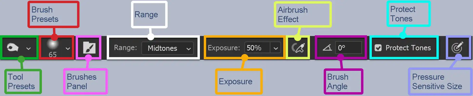 Select which tones to dodge (darken).