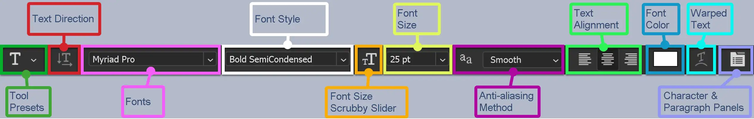 Horizontal Type Tool Options