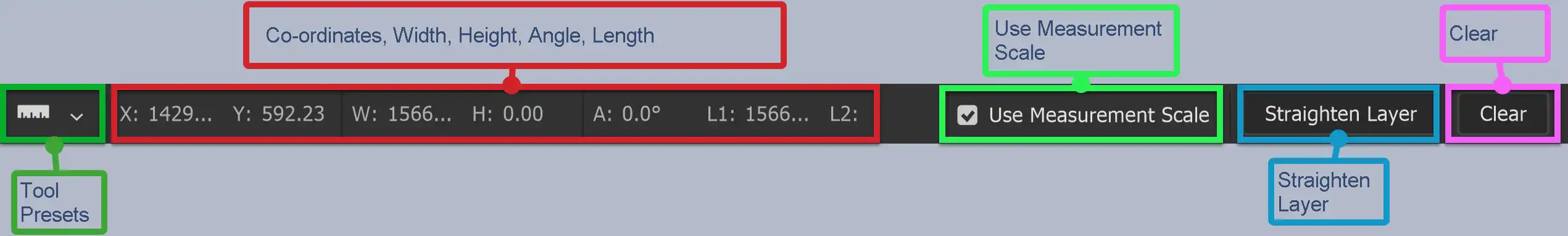 2. Measurements in Options Bar