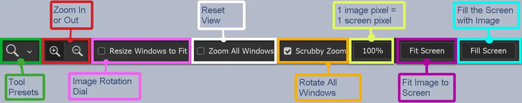 The Zoom Tool allows you to zoom in and out on an image, or images.