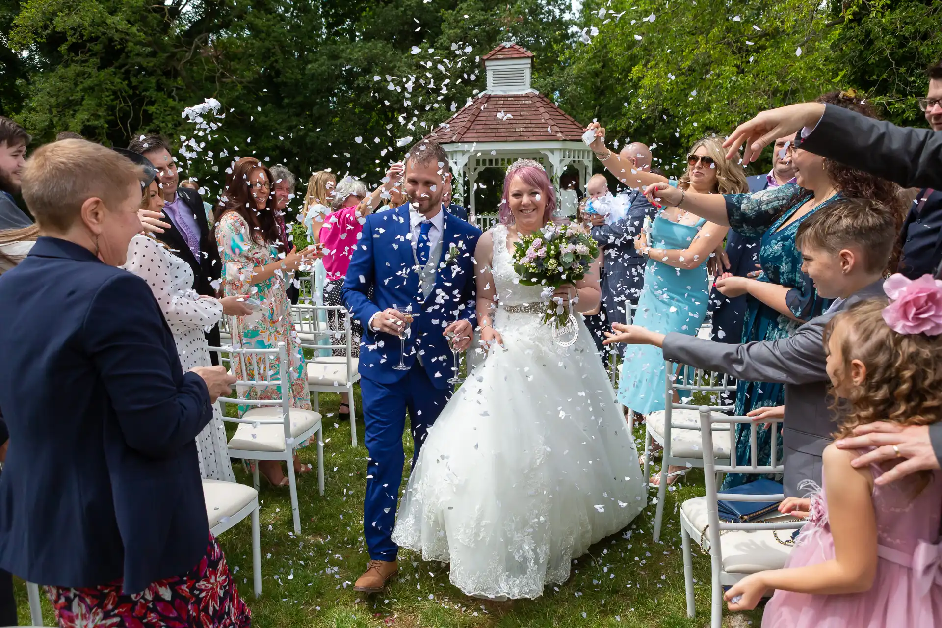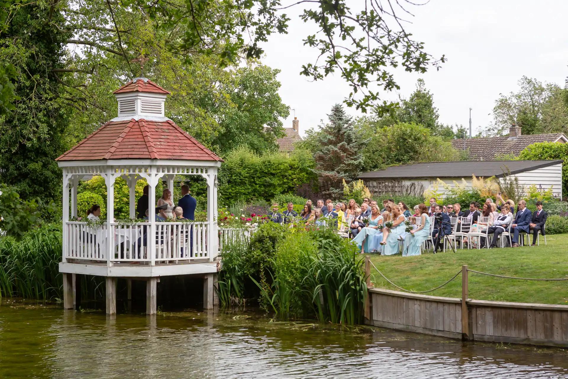 Sam and Kayleigh's cermony and reception were both held at Sheene Mill. The fine weather allowed the ceremony to take place outside in the outdoor wedding pavilion that is suspended across the River.